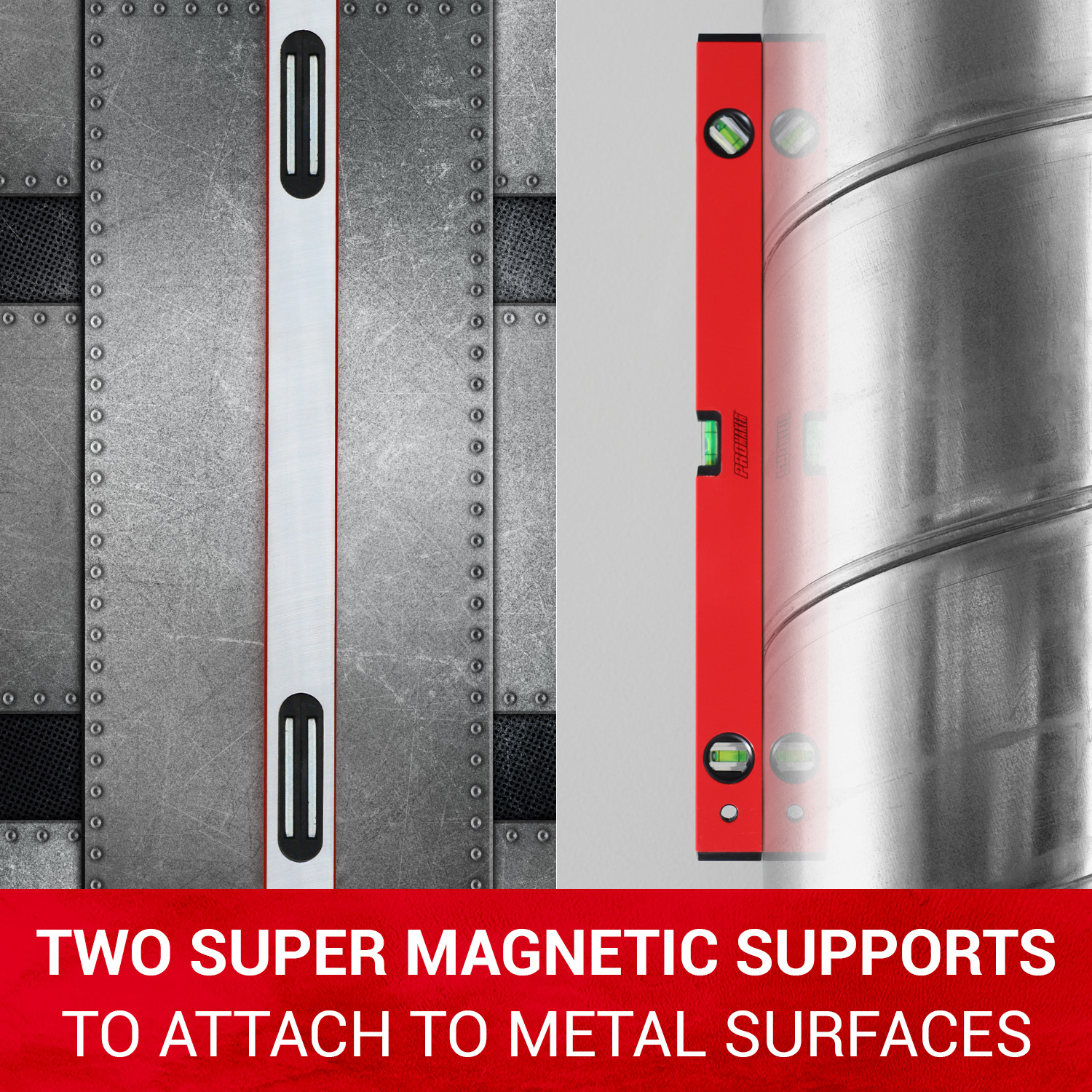Magnetic Base for Hands-Free Use: Strong magnets securely attach to metal surfaces, allowing for hands-free leveling on pipes, beams, or metal frames.
